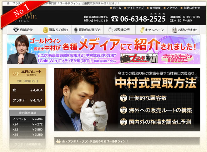 TV、雑誌等のメディアで話題の有名な鑑定士が丁寧に査定してくれるGold Win(ゴールドウィン)。